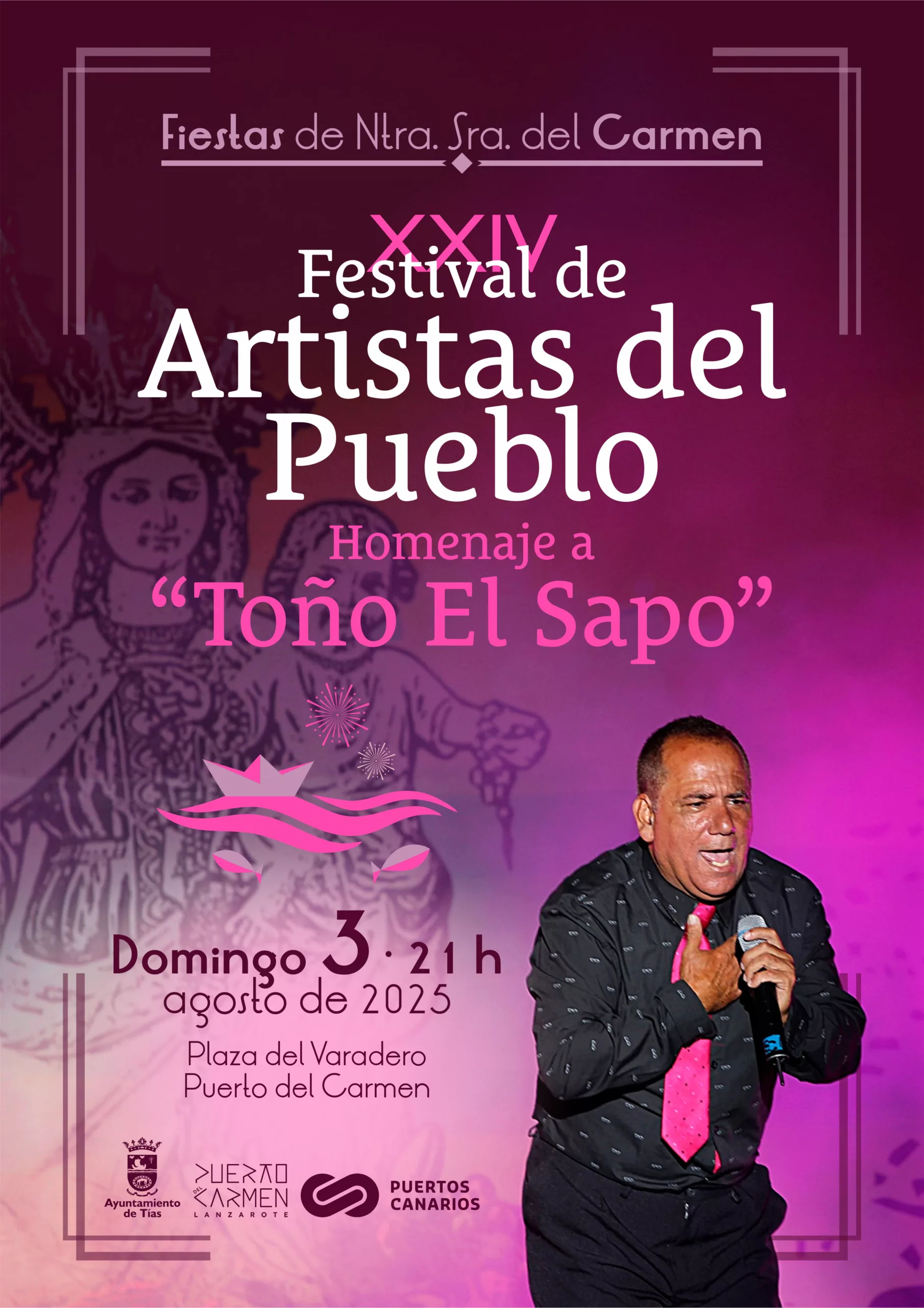 Uno de los momentos más emotivos será el Festival de Artistas del Pueblo, que este año cambia su nombre a Festival de Artistas del Pueblo “Toño El Sapo”, en homenaje al recientemente fallecido Juan Antonio Acosta Fernández, quien dedicó gran parte de su vida a este evento. La XXIV edición del festival tendrá lugar el domingo, 3 de agosto a las 21:00 horas.
