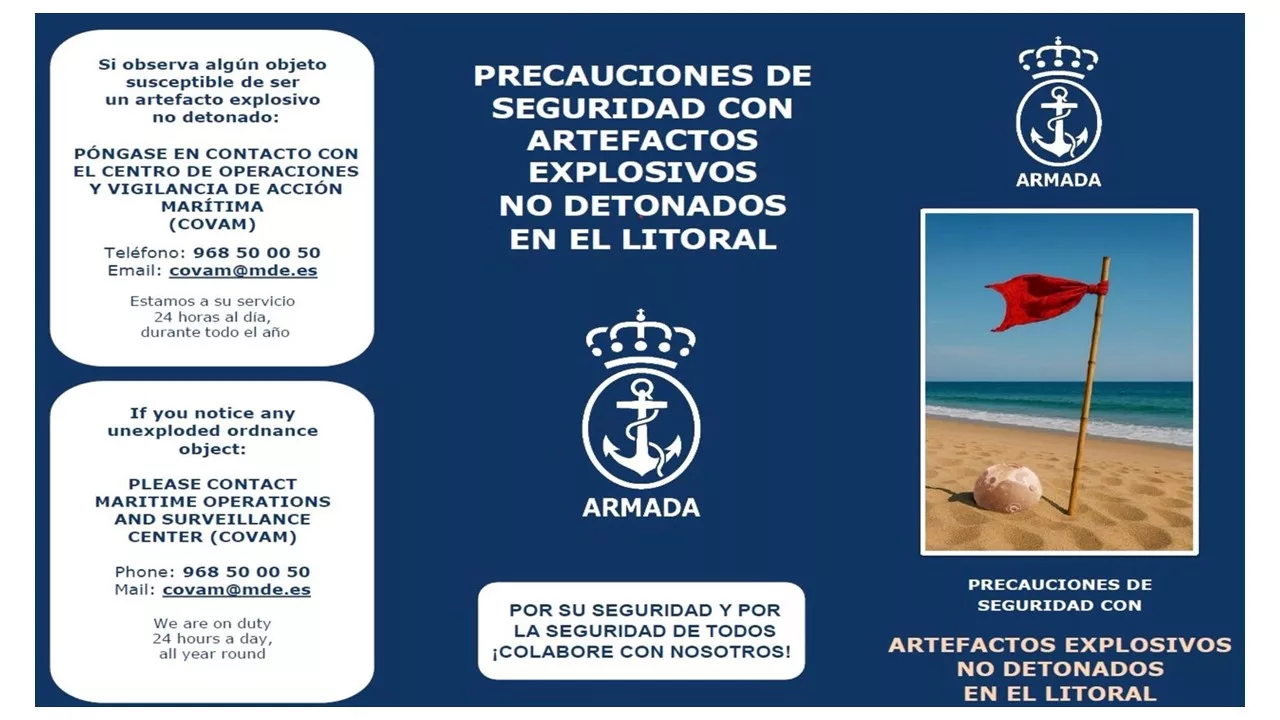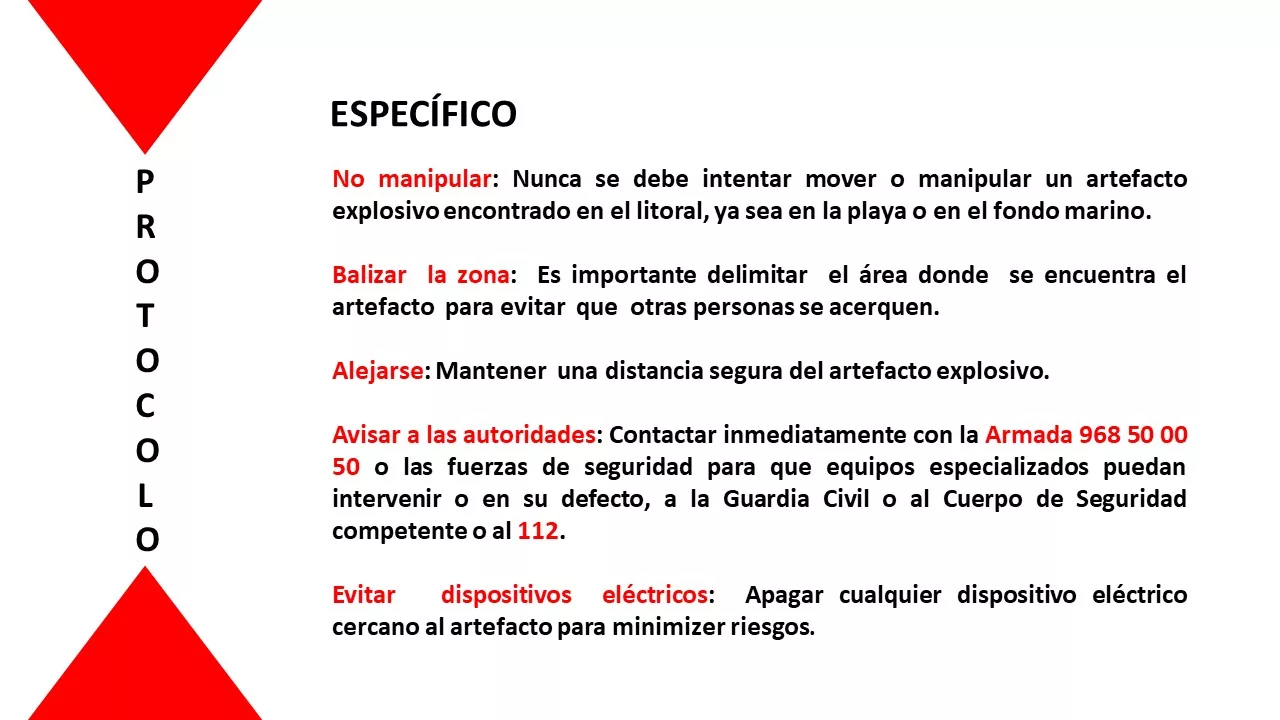 👇 ¿Qué debemos hacer en caso de observación o ante el hallazgo de artefactos explosivos no detonados en el litoral? 👇