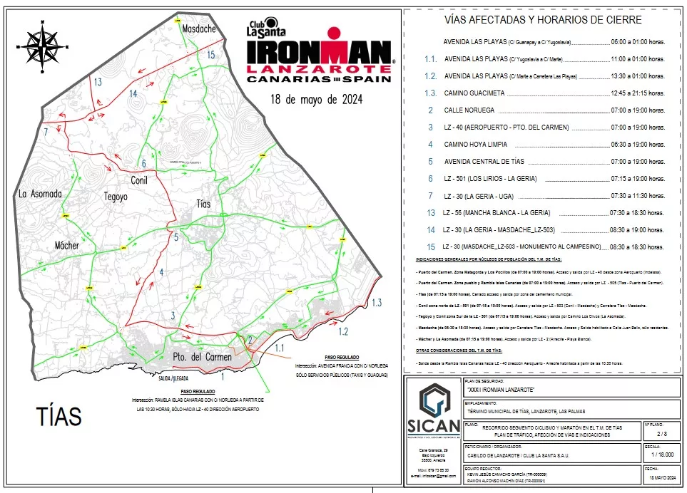 VÍAS AFECTADAS Y HORARIOS DE CIERRE EN LA ISLA