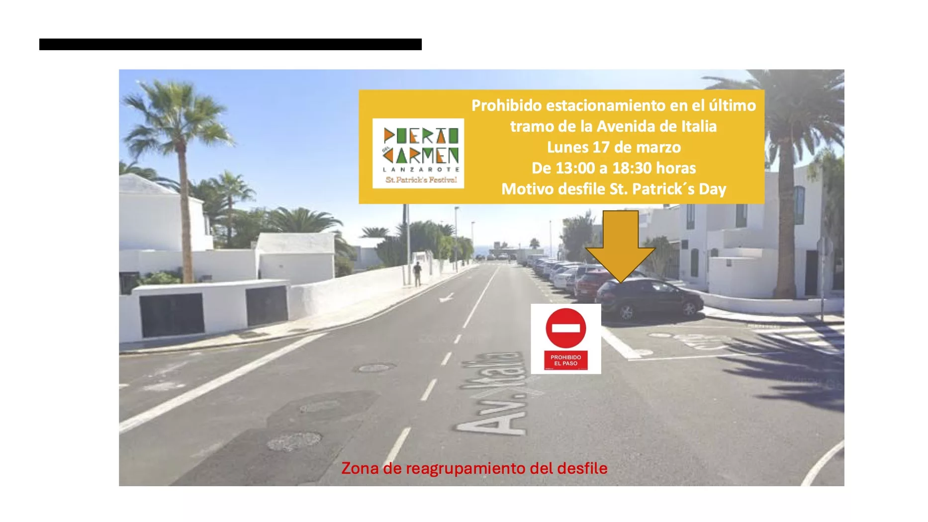 Por lo que habrá otra zona con prohibición de aparcar en la calle Alegranza de 14:00 a 20:00 horas para la recogida de elementos que participan en el desfile:
