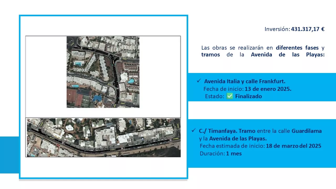 Este proyecto busca mejorar el estado del pavimento asfáltico en varias vías principales del municipio, contribuyendo a una circulación más segura y eficiente tanto para los conductores como peatones. Las obras forman parte del compromiso por la modernización de la infraestructuras viales de Puerto del Carmen, zona clave por su alta afluencia turística, económica y comercial.