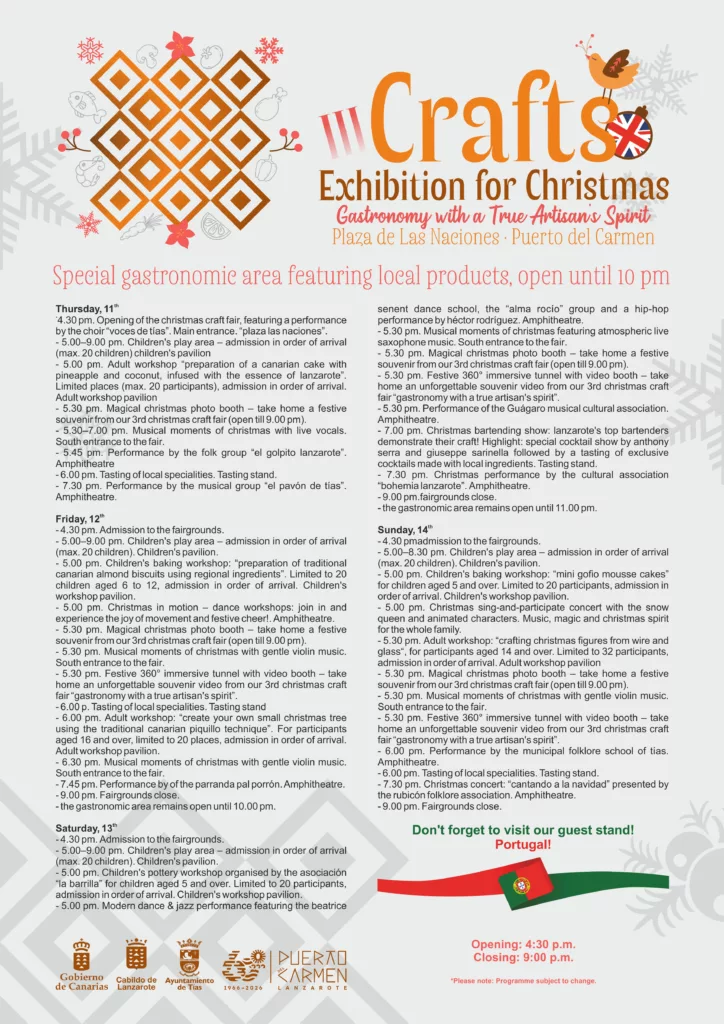 Con esta tercera edición, Puerto del Carmen consolida su apuesta por la artesanía como motor cultural y económico en la antesala de la Navidad, ofreciendo un entorno donde tradición, innovación y gastronomía se unen para poner en valor la identidad canaria y, este año, también la riqueza cultural del país invitado.